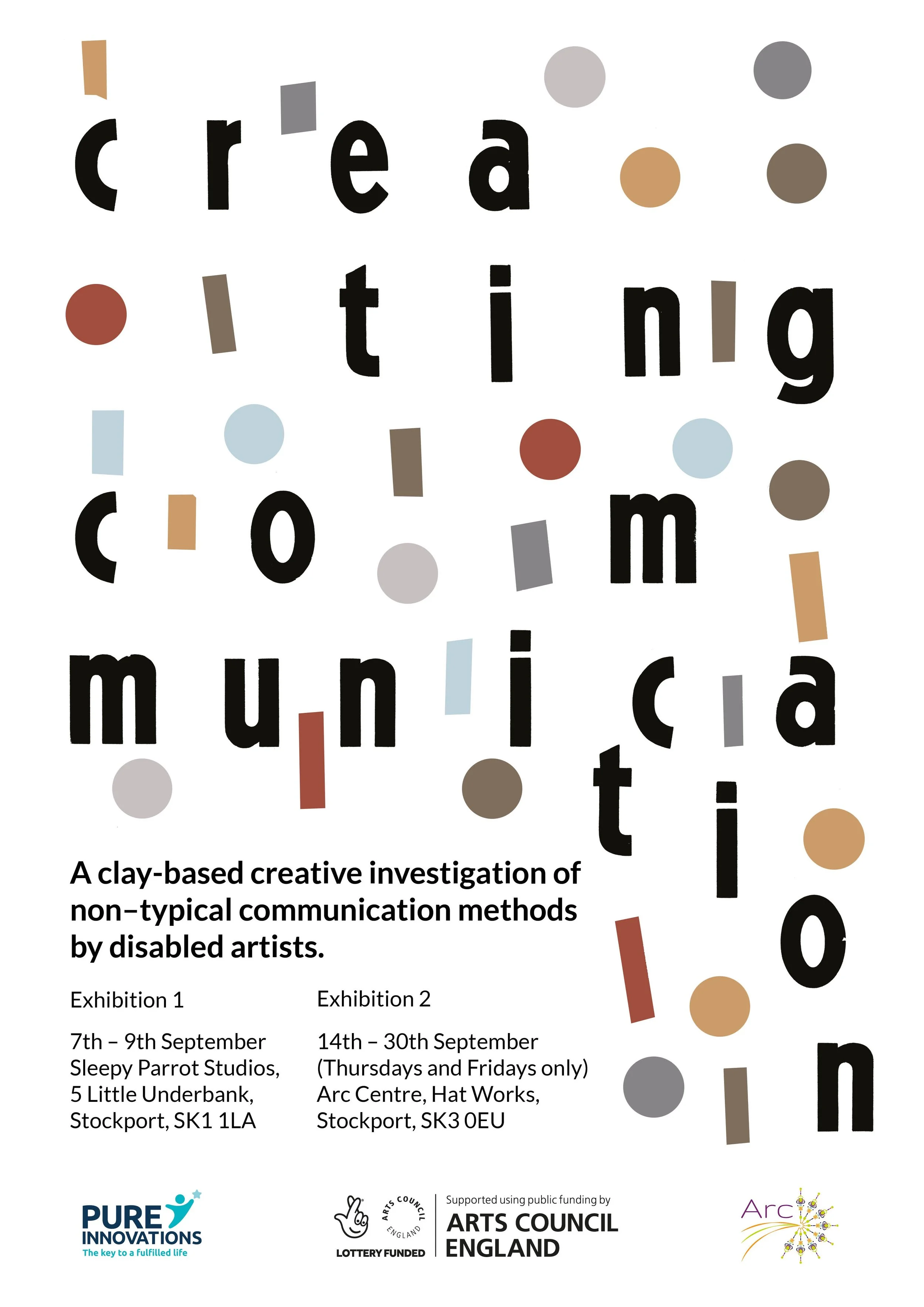I worked with disabled artists at Pure Innovations in Stockport on a clay-based investigation of non-typical communication methods. The project spanned four months, beginning with creative research, developed upon with an individualised participant-led support approach, and culminating in two successful exhibitions of the works produced at Sleepy Parrot Studios and Arc Centre. Over half of the pieces were also chosen to be exhibited at the Manchester Open exhibition at HOME.